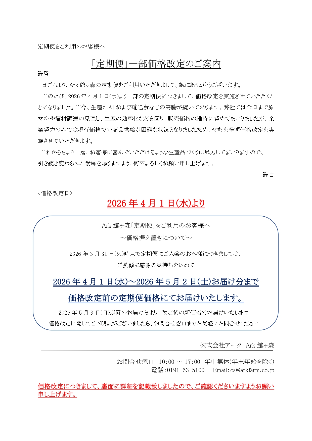 日頃よりArk館ヶ森をご利用いただきましてありがとうございます。