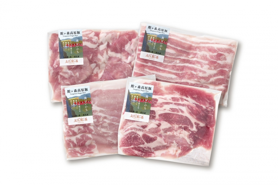 館ヶ森高原豚4種のスライスを少量ずつにしたセット。一人暮らしの方やご年配の方でも無理なく食べきれる少量のギフトセットです。トレーを使わない「ノントレー包装」なので保存にも便利です。