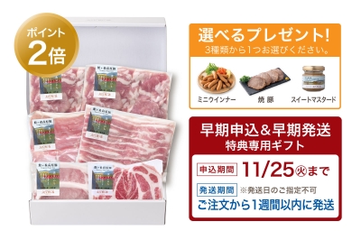 【ポイント2倍・送料無料】選べるプレゼント付き!館ヶ森高原豚ノントレーセット(3~4人向け)