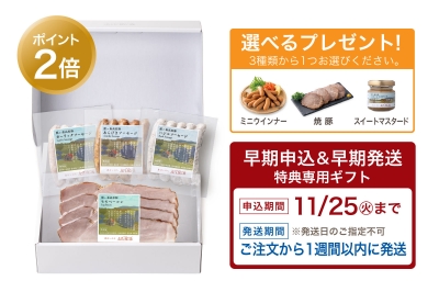 【ポイント2倍・送料無料】選べるプレゼント付き!無添加ハム・ソーセージセット(2~3人向け)
