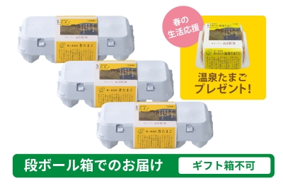 【春の生活応援!】昔ながらの放し飼いで育てた鶏の産む有精卵「昔たまご」3個セットに、温泉たまご1パックをプレゼント!
